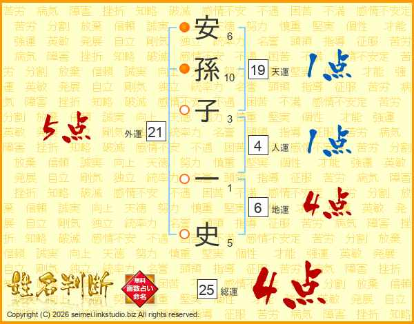 安(6画)孫(10画)子(3画) 一(1画)史(5画)