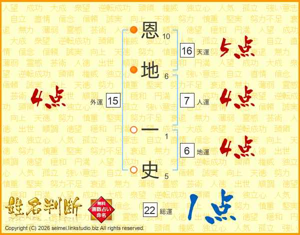恩地一史さんの天運は16画の5点!