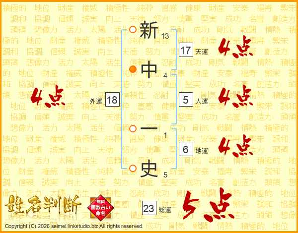 新中一史さんの天運は17画の4点!