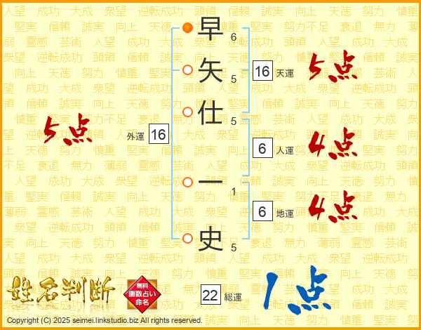 早(6画)矢(5画)仕(5画) 一(1画)史(5画)