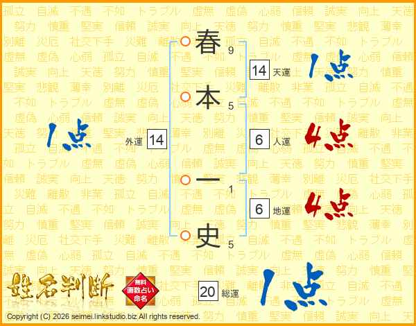 春本一史さんの天運は14画の1点!