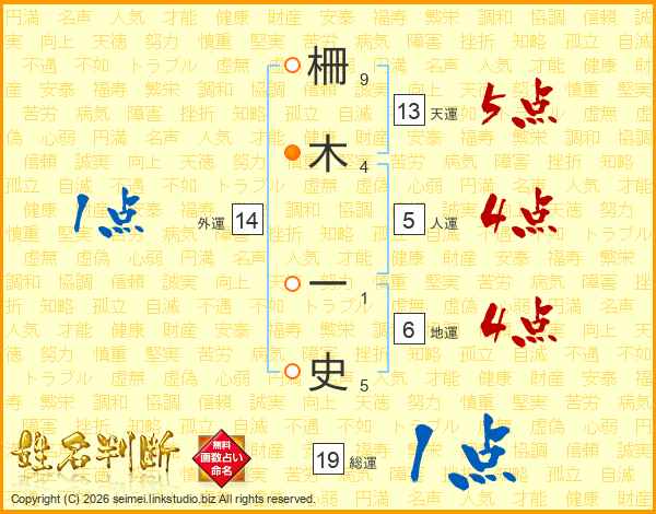 柵木一史さんの人運は5画の4点!