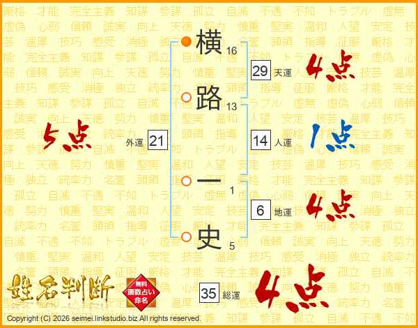 横路一史さんの総運は35画の4点!