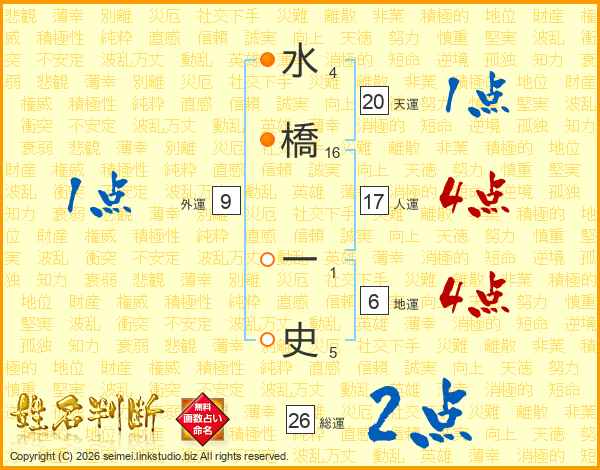 水橋一史さんの総運は26画の2点!