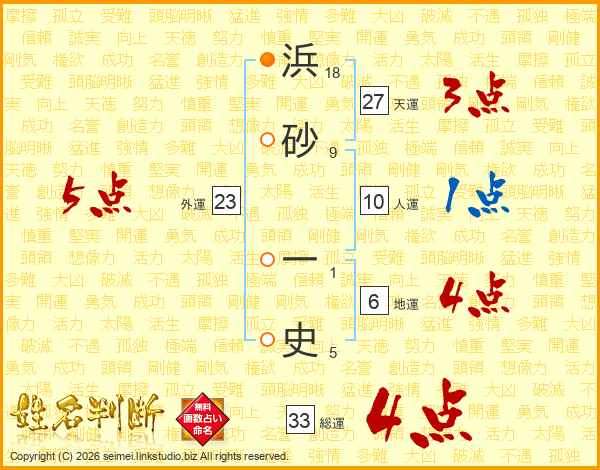 浜砂一史さんの総運は33画の4点!