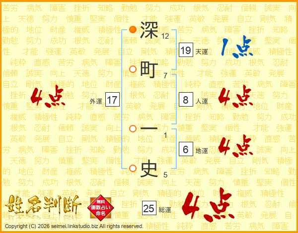 深町一史さんの天運は19画の1点!