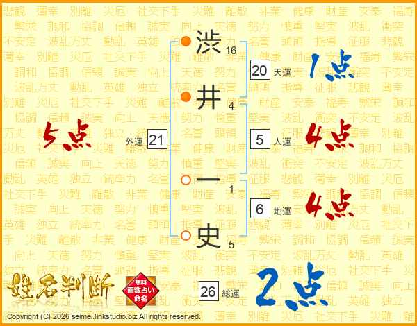 渋井一史さんの総運は26画の2点!