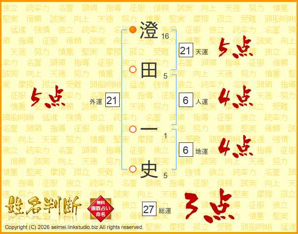澄田一史さんの天運は21画の5点!