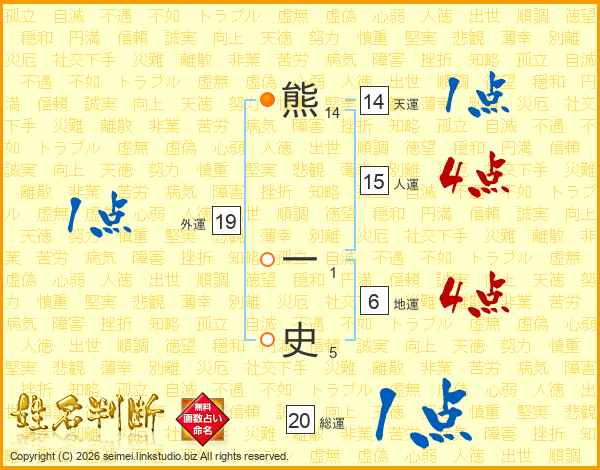 熊一史さんの天運は14画の1点!