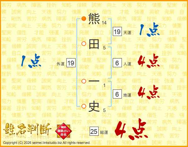 熊田一史さんの総運は25画の4点!