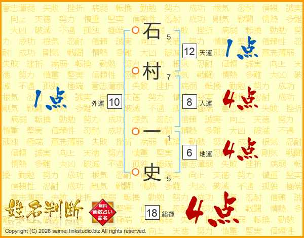 石村一史さんの総運は18画の4点!