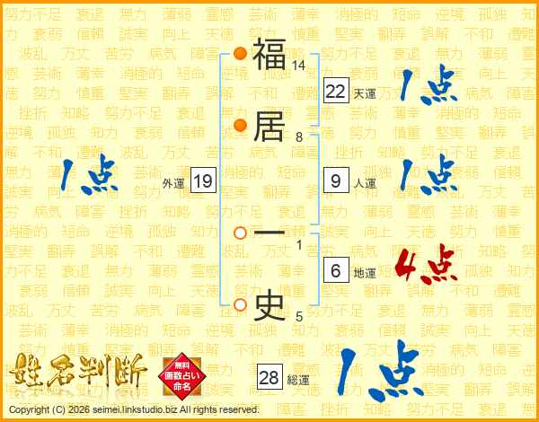 福(14画)居(8画) 一(1画)史(5画)