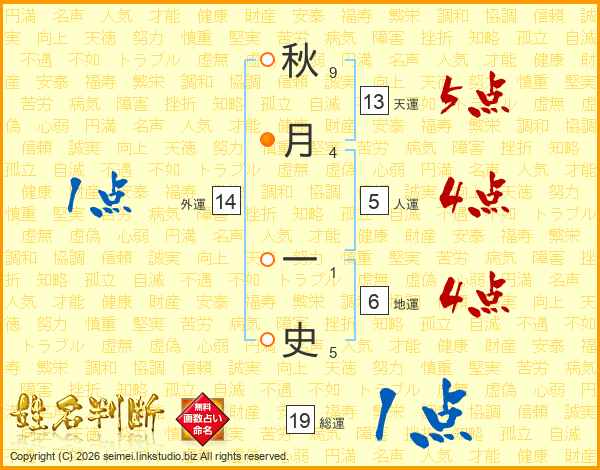 秋月一史さんの総運は19画の1点!
