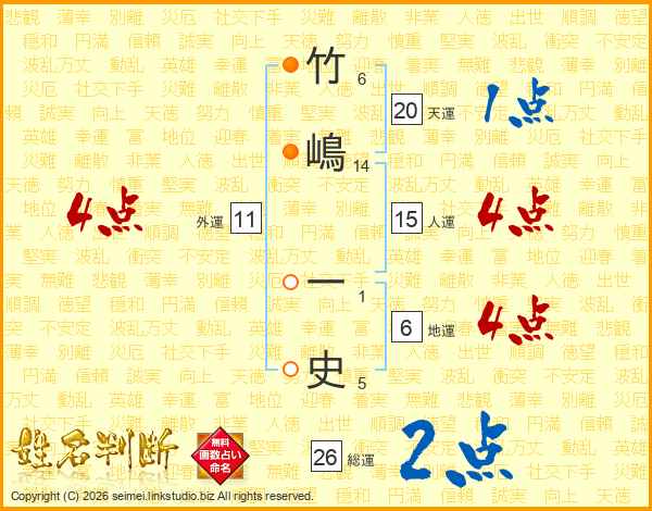 竹嶋一史さんの総運は26画の2点!
