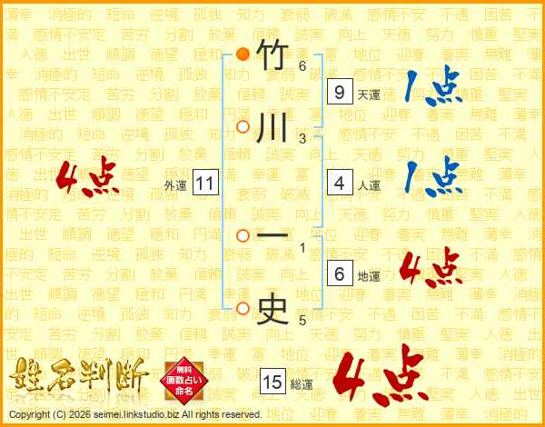 竹川一史さんの総運は15画の4点!