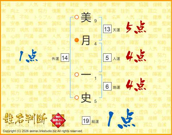 美月一史さんの総運は19画の1点!