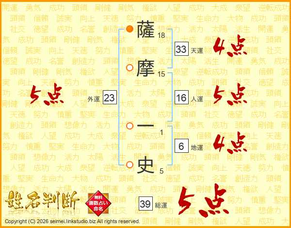 薩摩一史さんの総運は39画の5点!