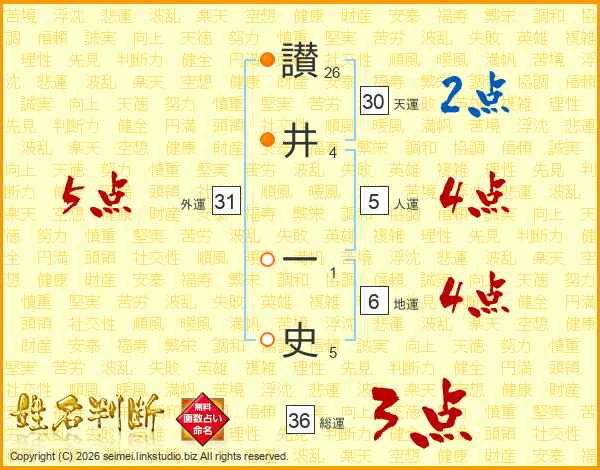 讃井一史さんの天運は30画の2点!
