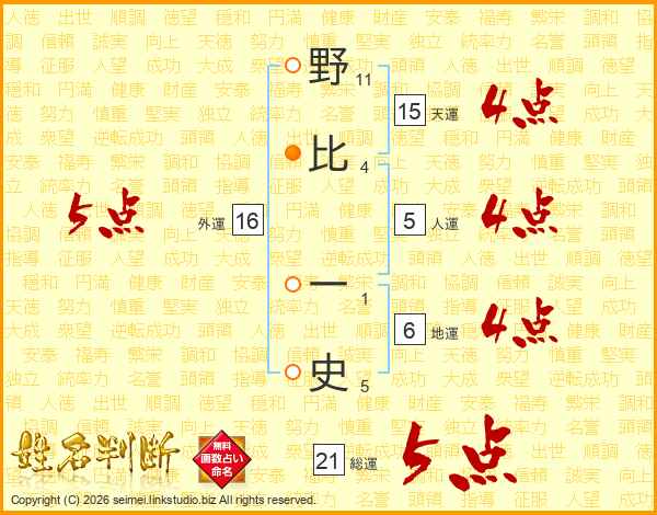 野比一史さんの総運は21画の5点!