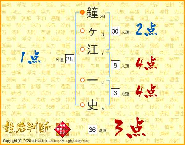 鐘ヶ江一史さんの総運は36画の3点!