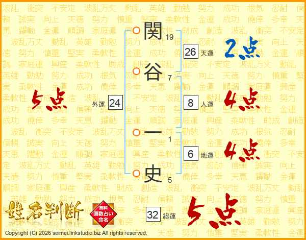 関谷一史さんの総運は32画の5点!
