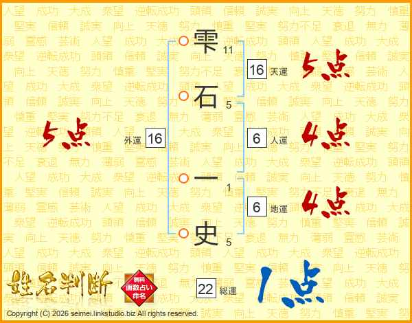 雫石一史さんの総運は22画の1点!