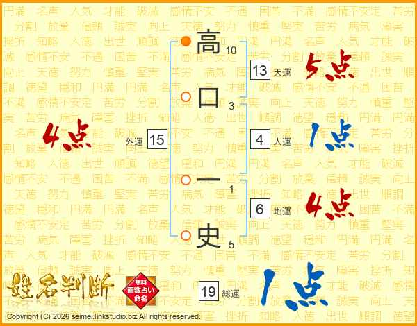 高口一史さんの天運は13画の5点!