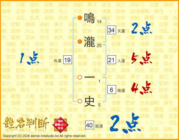 鳴瀧一史さんの総運は40画の2点!