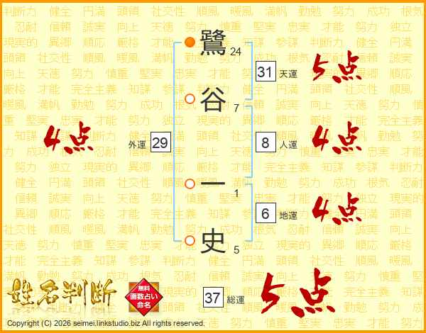 鷺谷一史さんの総運は37画の5点!
