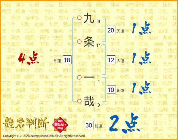 九条一哉さんの総運は30画の2点!