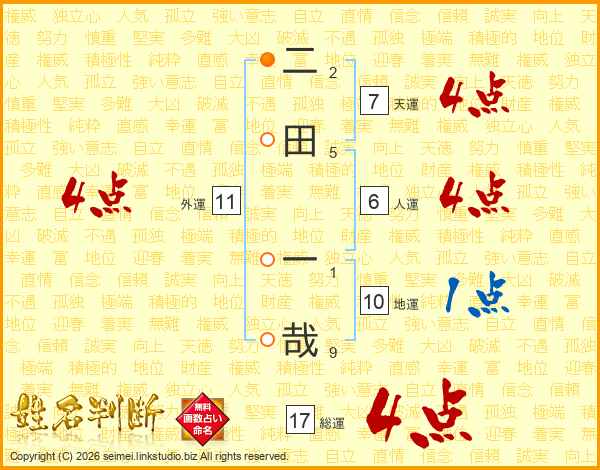 二田一哉さんの総運は17画の4点!