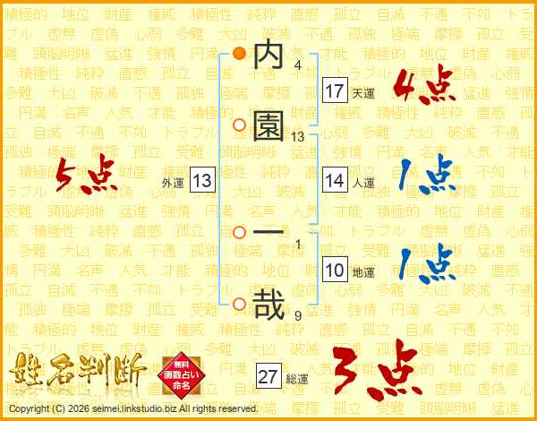 内園一哉さんの外運は13画の5点!