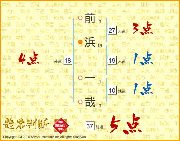 前浜一哉さんの総運は37画の5点!