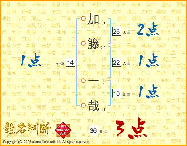 加籐一哉さんの天運は26画の2点!