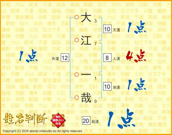 大(3画)江(7画) 一(1画)哉(9画)