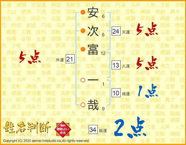 安次富一哉さんの人運は13画の5点!