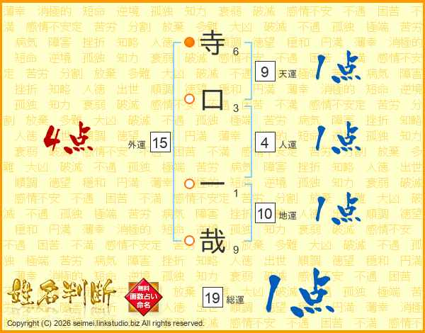 寺口一哉さんの総運は19画の1点!