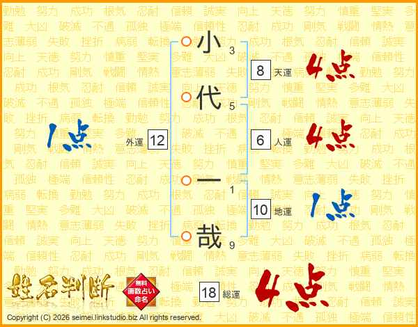 小代一哉さんの総運は18画の4点!