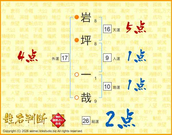 岩坪一哉さんの総運は26画の2点!