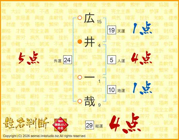 広井一哉さんの総運は29画の4点!