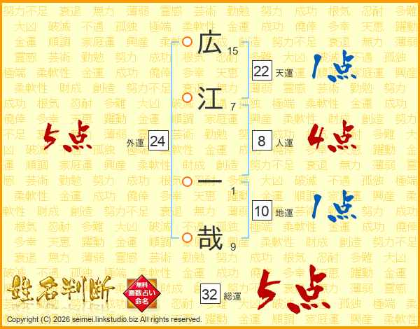 広江一哉さんの総運は32画の5点!