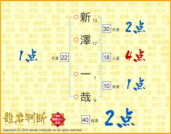 新澤一哉さんの天運は30画の2点!
