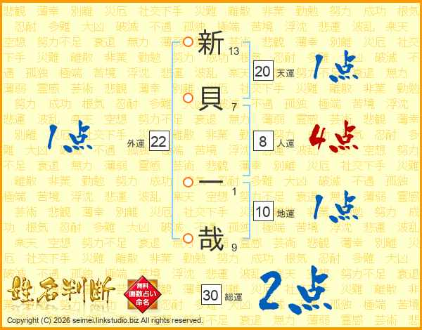 新貝一哉さんの総運は30画の2点!
