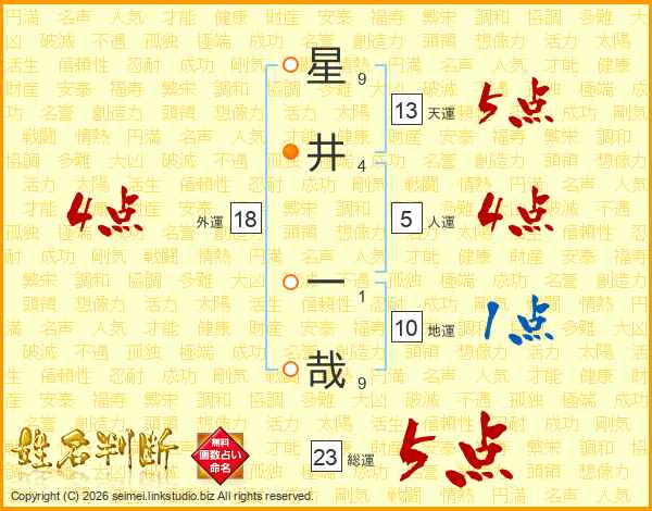 星井一哉さんの総運は23画の5点!