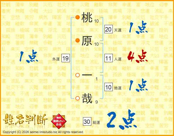桃原一哉さんの総運は30画の2点!