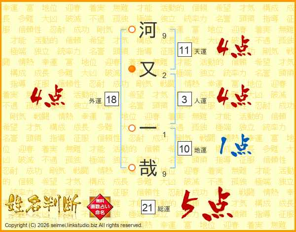河又一哉さんの総運は21画の5点!