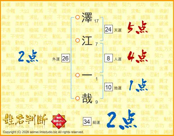 澤江一哉さんの天運は24画の5点!