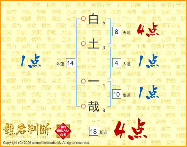 白土一哉さんの総運は18画の4点!