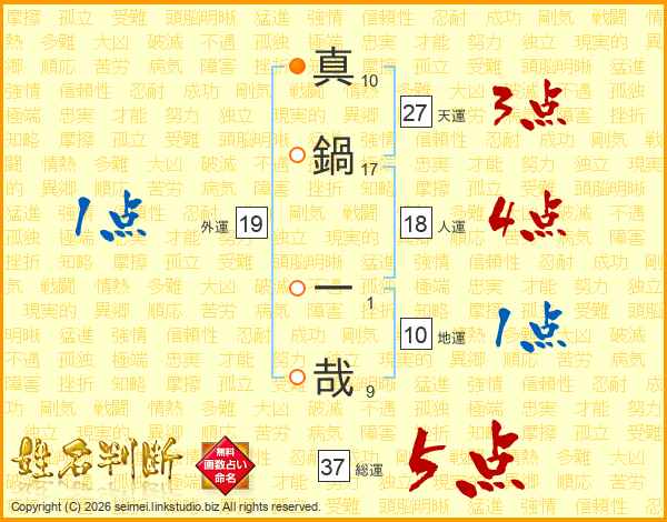 真鍋一哉さんの総運は37画の5点!