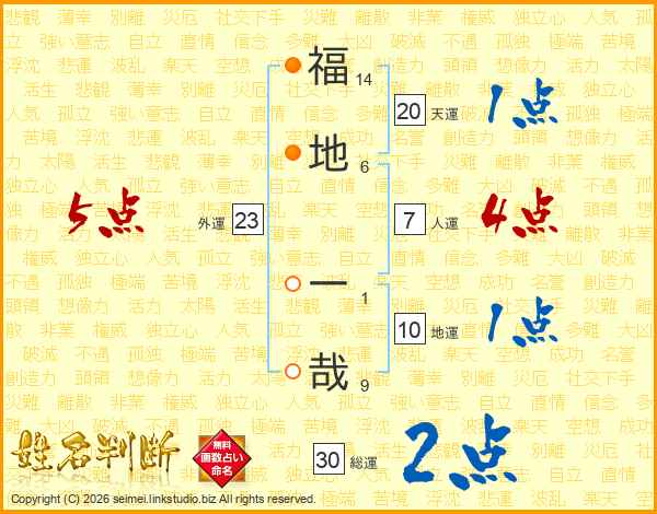 福地一哉さんの総運は30画の2点!
